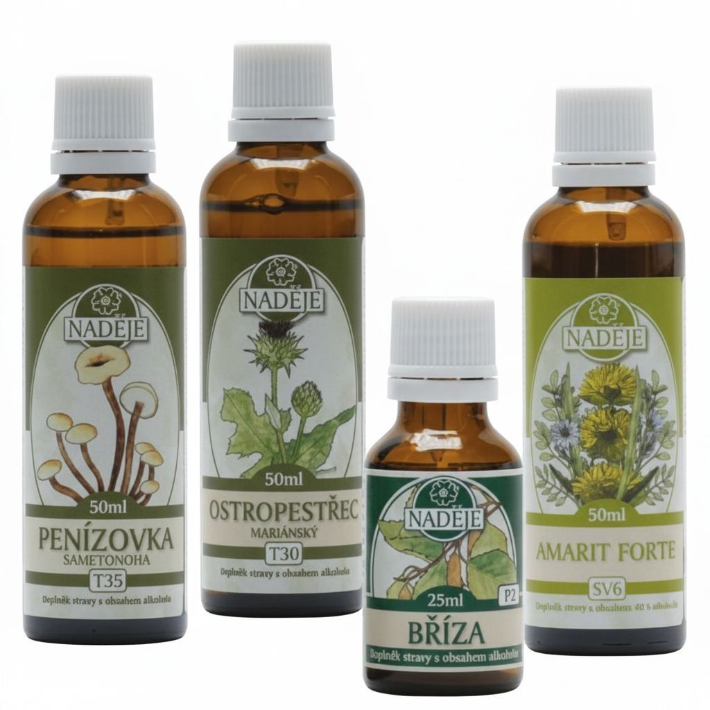 Současně užívat tinktury penízovka, ostropestřec a bříza, po využití tinktury z břízy vezmete Amarit a pokračujete v užívání s penízovkou a ostropestřcem do vybrání všech lahviček.
